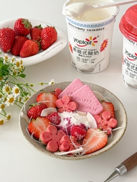 例如,在早餐时,用希腊酸奶搭配自己喜爱的水果和燕麦,或者倒入一袋超级食物粉同时插入几片饼干,就能简单快手地完成一个健康又美味同时还拥有高颜值的酸奶碗,让一份酸奶同时具备清爽口感与高营养密度,适合晨起或运动后食用:
