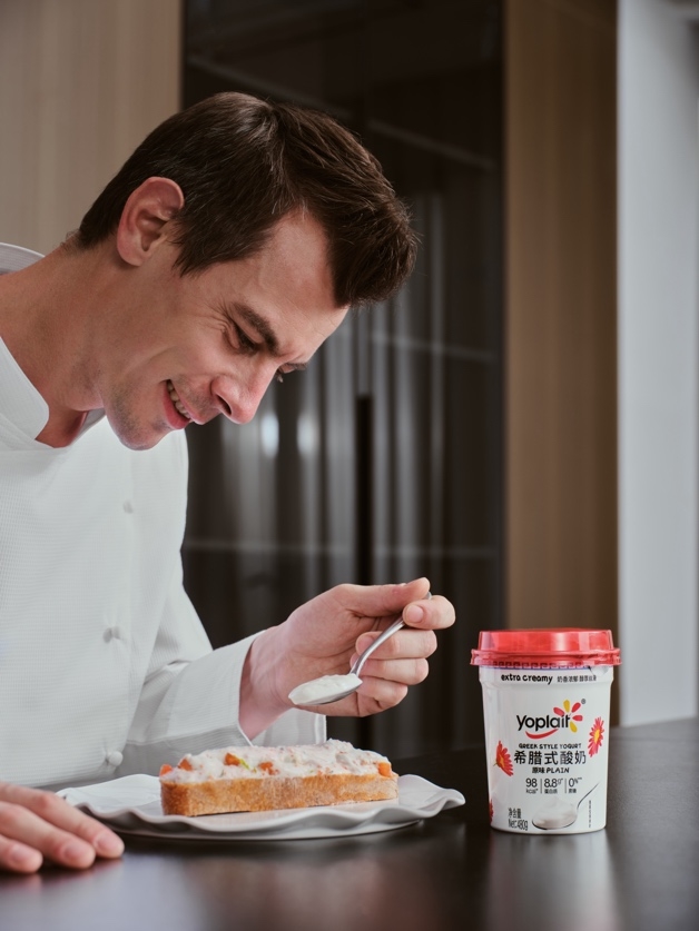 而在更偏料理感的应用中,法国主厨摩根用优诺希腊酸奶设计的鸡肉三明治,通过低温烹饪与酸奶调味,让代餐真正升级为一份具有餐厅质感的食物: