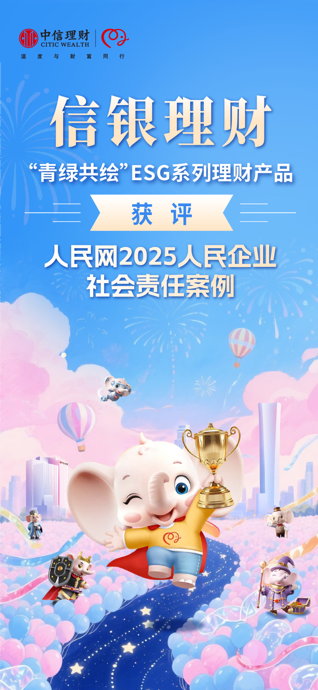 2025年11月1日,由人民网主办的“2025人民企业社会责任论坛”在北京隆重启幕。信银理财创新打造的“青绿共绘”ESG 系列理财产品,凭借在社会责任践行领域的扎实实践,成功获评“2025 人民企业社会责任案例”,实力彰显行业认可。信银理财自成立以来,已连续3年入选人民网相关优秀案例。未来,信银理财将持续以专业金融力量赋能可持续发展。