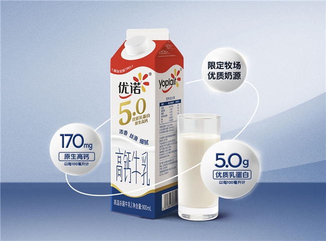 更重要的是,这一突破并非偶然。早在2020年,优诺便通过4.0+牛乳,首次在中国市场建立起“以蛋白质含量为核心指标”的产品命名逻辑。从3开头的蛋白质含量到4.1,再到5.0,这条路径本身就构成了一条清晰的技术与消费教育轨迹。