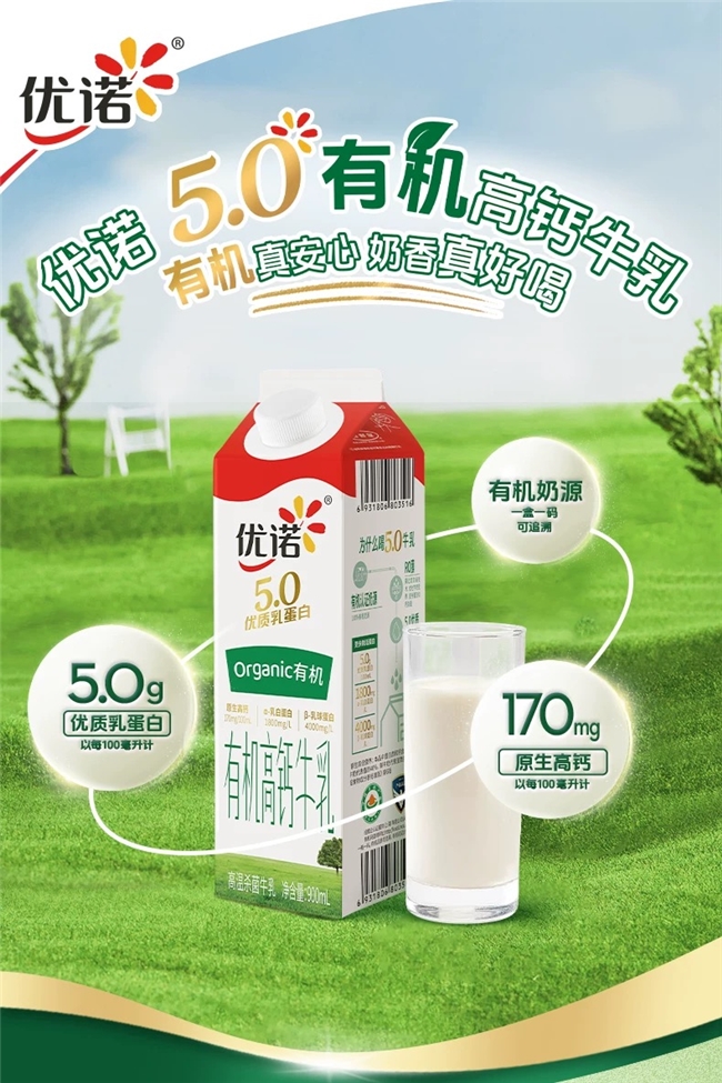 可以看到,优诺5.0系列在无任何强化添加的前提下,实现了每百毫升170毫克的原生钙含量,使牛奶真正承担起日常饮食中主要钙来源的角色。这种双重领先,使优诺5.0不再只是高蛋白牛奶,而是营养结构更加完整的基础食材升级版本。